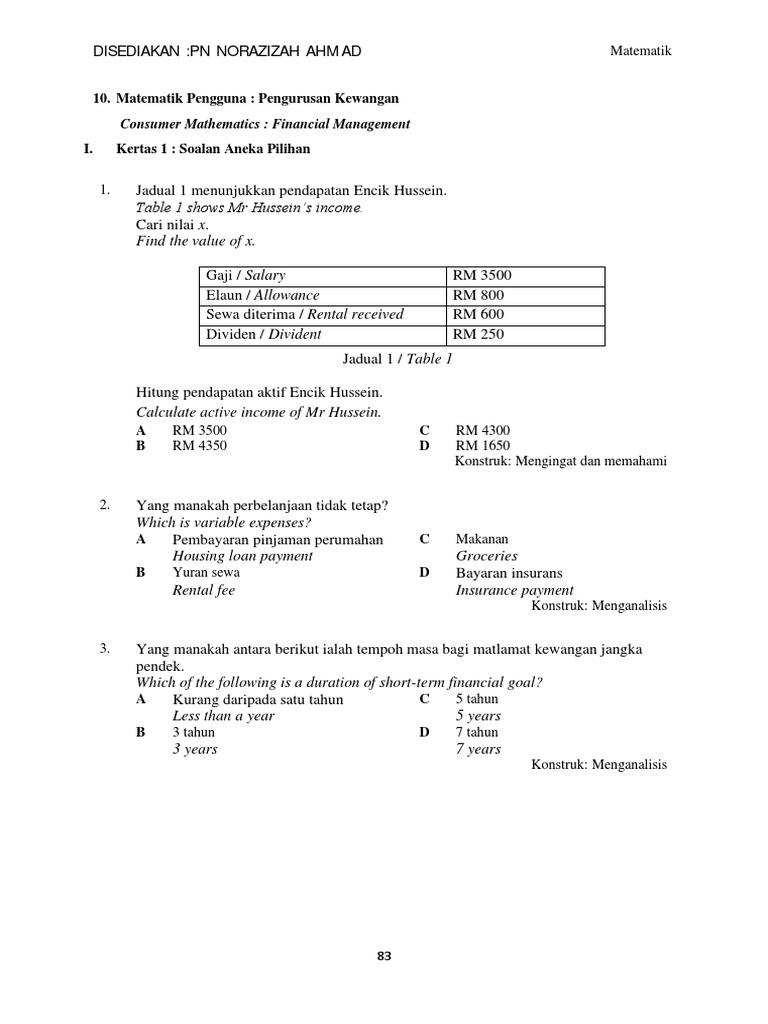 Nota Bab 10 Matematik Pengguna Pengurusan Kewangan ZK Nota dan Soalan Matematik Tingkatan 4 Bab 10 KGM Sab 1. Pembinaan item soalan hendaklah mengikut JSU. Maksudnya di sini pengalaman individu tersebut akan turut mempengaruhi orang lain.